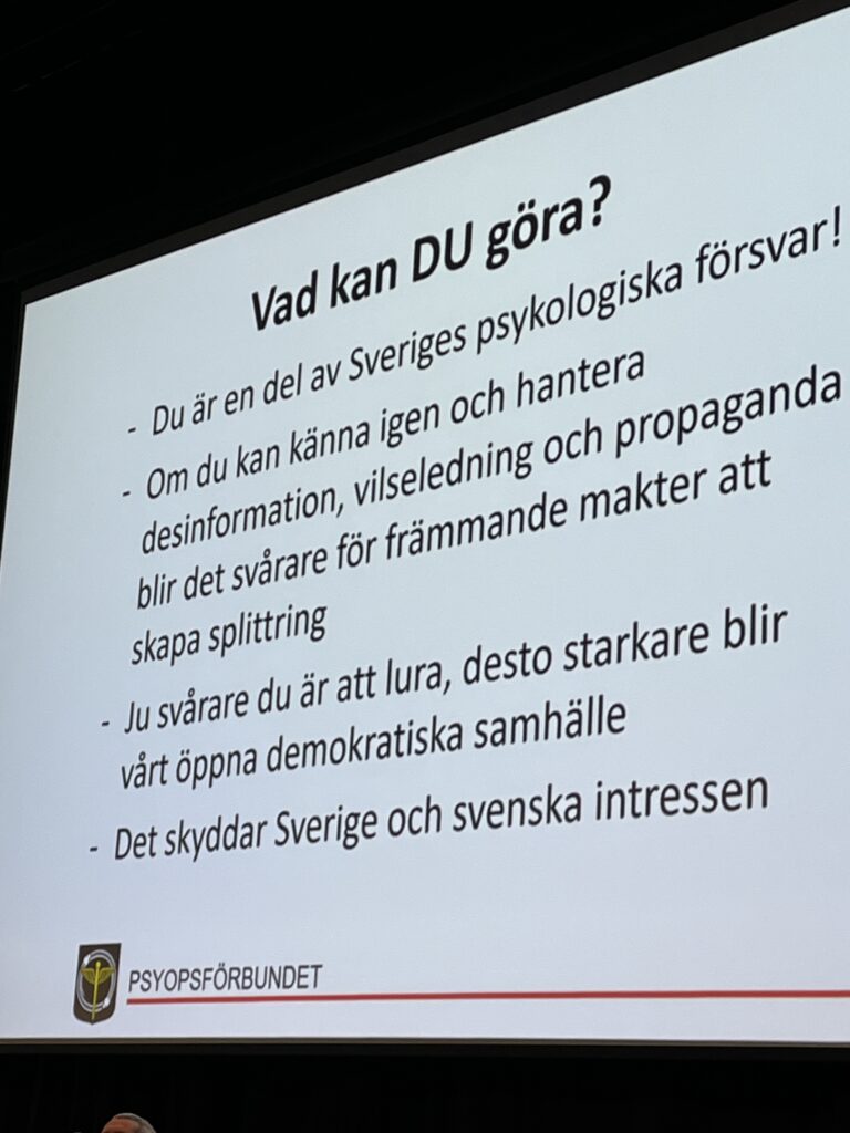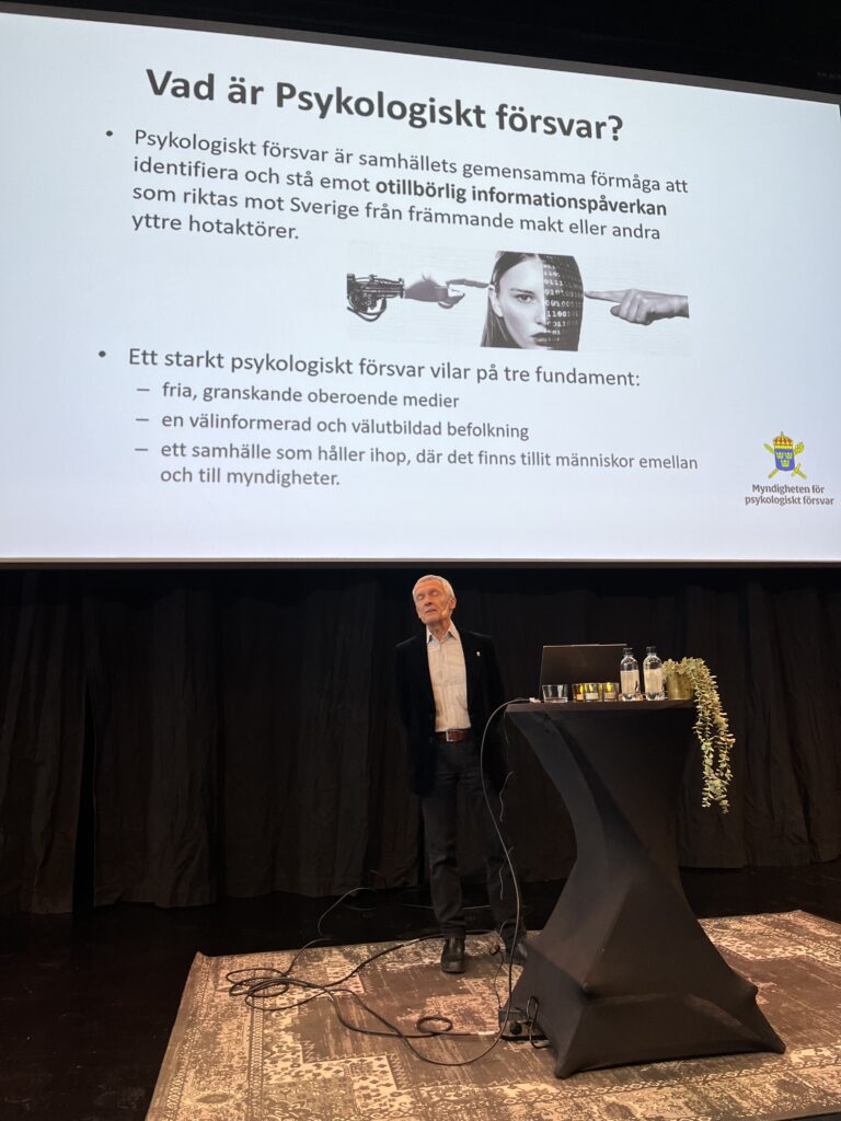 Vårens första föreläsning handlade om psykologiskt försvar. Det var Erik Mårtensson, pensionerad officer som försökte bena ut begreppen för oss. Erik har varit med och startat Försvarsmaktens förband för psykologiska operationer. Efter pensioneringen har han verkat som utbildare åt myndigheten för psykologiskt försvar. Vi hör dagligen hur olika aktörer försöker på verka oss att tycka eller agera i olika riktningar. Vad ska jag tänka på för att inte bli lurad?