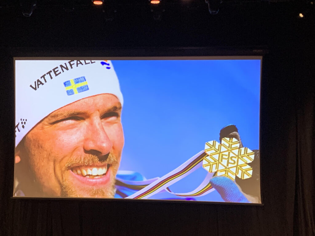 Det var fullsatt när vår skidlegendar föreläste om sin karriär i spåren. På ett fantastiskt medryckande och sympatiskt sätt berättade Johan om sina vedermödor och glädjeämnen i och utanför skidspåren. En fysisk prestation, men också en stark mental prestation. Betydelsen av mental träning och gemenskap var tydlig. Och varje gång man får uppleva spurterna som gav ädla medaljer, så får man gåshud. Många tänkvärda ord från Johan Olsson!