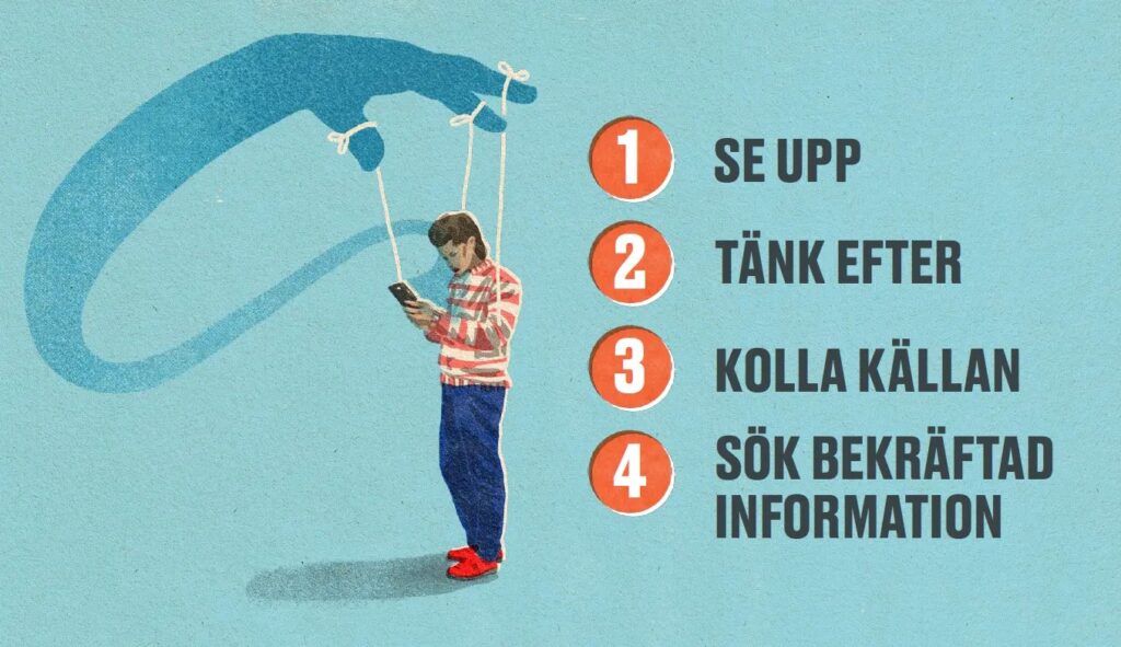 Fyra bra punkter: Se upp – Tänk efter – Kolla källan – Sök bekräftad information